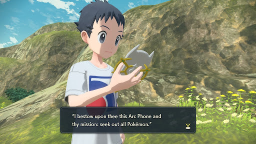 The premise of Legends: Arceus is fairly straightforward at first. The player is sent to the land of Hisui in the distant past by Arceus itself with one task: Meet and catch every Pokémon. Soon after arriving, you meet the cheerful Professor Laventon, who observed you falling out of the sky. He introduces the games three starter Pokémon: Rowlet, Cyndaquil and Oshawott before they run off and he has to ask the player to catch them. After doing so and impressing the professor, you’re brought to Jubilife Village and invited to join the Galaxy Teams Survey Corps. It’s after passing another test and officially joining that the game opens up and you find yourself investigating strange phenomena relating to the local guardian Pokemon and the opposing Diamond and Pearl clans who help take care of them. It’s not the most interesting start but by the end, you’ll be invested in the fate of Hisui as the mystery unravels. I can safely say that between this and the gameplay, I was hooked from the start. In fact, that gameplay is where Arceus stood out, even among other Pokémon games. In contrast to the traditional experience, Pokémon here can be caught without engaging them in the battle. You can simply throw pokéballs at them with varying degrees of success. Sneaking and hitting a Pokémon from behind can increase the chances of it getting caught. In addition to pokéballs, you can also throw food to distract Pokémon, stun them with spoiled apricorns or throw a ball containing Pokémon if a battle has to happen. While battling isn’t as much of a focus this time around, it’s still necessary in order to catch certain Pokémon and complete research tasks. Research tasks are sets of milestones that go toward unlocking Pokédex entries, as this time it's not as simple as just catching Pokémon. These tasks range from giving Pokémon food, to seeing them use certain moves, to completing specific sidequests. It’s a more engaging way of filling the Pokédex and an appropriate one considering the games setting. I personally found it very enjoyable to have to do the extra leg work.