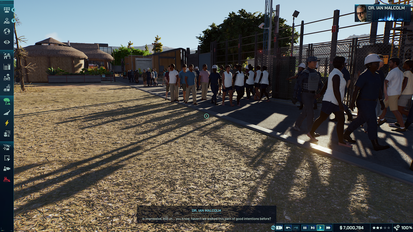 Another sour note of the game I want to mention are the Dino Attacks. Once in a while, dinosaurs may either roam in and request take out in the form of your guests and workers or, if you aren’t paying attention, the electrified fences may fail and a dinosaur or two may escape. While, yes, you can let your sadistic side out and let the people get nommed; remember, you are trying to run a legitimate theme park and letting your guests live out their voracious fantasies is not good for your bottom line. So, in order to combat these attacks and prevent your park from being the inspiration for YouTubers who discuss theme park accidents, you first need to build an Emergency Bunker for everyone to evacuate to and a Response Facility to handle the dinosaurs. Once the dinos are free or have wandered into your park, you can send these guys out and they’ll tranq the dinos, putting them into a peaceful sleep, allowing you to send a crew out and add the dinos to your park. These guys are also able to tranquilize sick dinos for the medical staff to examine them and, in a cool bit of gameplay, you can actually take control of the Response team, as well as other team members, and do the dirty work yourself. I do have to say that the controls here weren’t the best and felt just slightly loose but not enough to feel bad. That being said, despite being a cool addition and a decent tension adder, this never really felt like a major problem. As long as you’re keeping an eye on the generators, making sure the dinos are well-fed, and you have security cameras set up, dino attacks become just a minor hindrance then anything substantial. That’s not to say it’s a bad addition, I just would’ve loved to have seen it fleshed out just a bit more. Like, imagine a mode where you play the Response Team and your job is to hunt down and tranq all the escaped dinos in a first person horror game or, heck, imagine being able to play AS the dinos and wreak havoc yourself! I did make an interesting observation and this is honestly a bit funny. While I was playing the game and was controlling the Response Team, I took a close look at their Tranq Rifles and noticed it had an underbelly M203 Grenade Launcher attached. I don’t know why that got my attention but I’m just having this image of one of the members shouting ‘Say “Hello” to my little friend!’ and firing a grenade from the tranq as a last resort. That aside, though you have to admit that would be funny, the only other real sour note I want to mention is the campaign itself. To be honest, it’s just OK at best and mediocre at worst. To put it bluntly, It’s really just a glorified longform tutorial to get you used to the mechanics of the game, with some minor story bits here and there, and nothing really substantial. Not that I was expecting a game where you manage a theme park to have storytelling to rival Mass Effect, mind you, but it would’ve been nice to have just a decent story. Though, come to think of it? That actually would be kind of a cool game idea. I will also admit the dinosaur-activist faction in the game, who will try to sabotage your parks, is a cool idea as I can totally see something like them existing in real life if dinos were somehow resurrected. Still, while I’ve no doubt fans of the Jurassic World series would enjoy the campaign but, for others, it’s good for the first few levels then you’re probably better off playing the sandbox mode for the rest of the game.